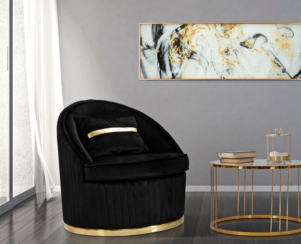 Questa poltrona rotonda in tessuto imbottito incarna l'eleganza con il suo design dalle linee semplici e moderne. La sua base è impreziosita da una raffinata decorazione dorata che aggiunge un tocco di lusso. Per un ulteriore dettaglio decorativo, la poltrona è dotata di un cuscino con un decoro geometrico anch'esso dorato. Un elemento di grande stile e sofisticazione per qualsiasi spazio.
