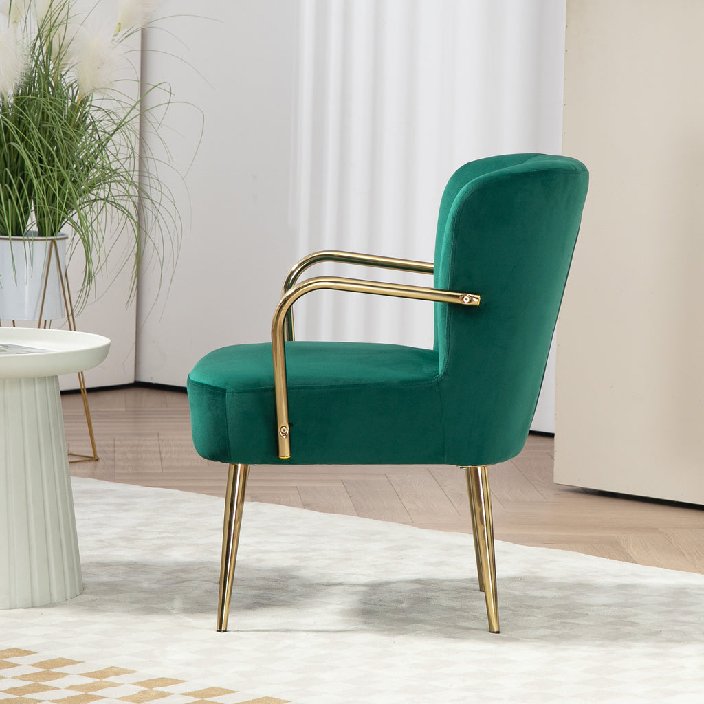 - ELEGANTE E SOFISTICATA: Questa poltrona in velluto verde con gambe e braccioli in acciaio dorato aggiunge un tocco di stile retrò a qualsiasi stanza, rendendola una poltrona d'accento eccezionale per la tua casa