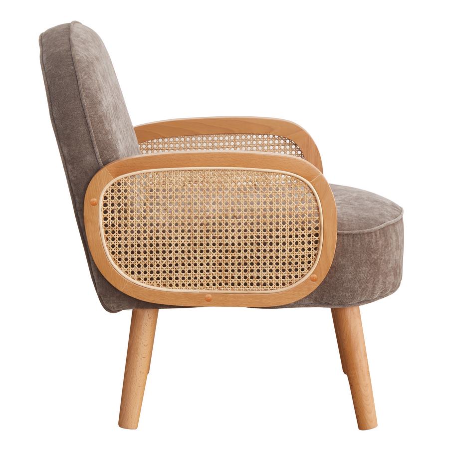 Poltrona design retrò Doris: l'intramontabile fascino vintage è l'icona di un'epoca che noi non potevamo non includere nella nostra collezione pensata per gli amanti dello stile mid century. L'emblematica e ricercata seduta è stata rielaborata in chiave moderna e scandinava, senza compromettere però la sua originalità. Doris presenta una struttura in legno di faggio e un rivestimento in tessuto brown impreziosito da braccioli in legno di rattan e paglia di vienna.