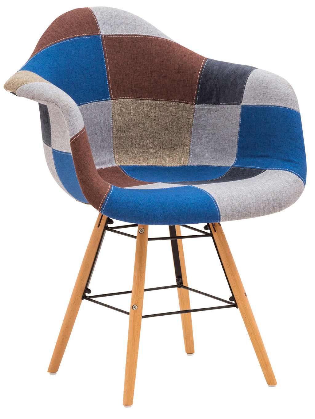 - Chaise/fauteuil rembourré en tissu patchwork avec pieds en bois de hêtre