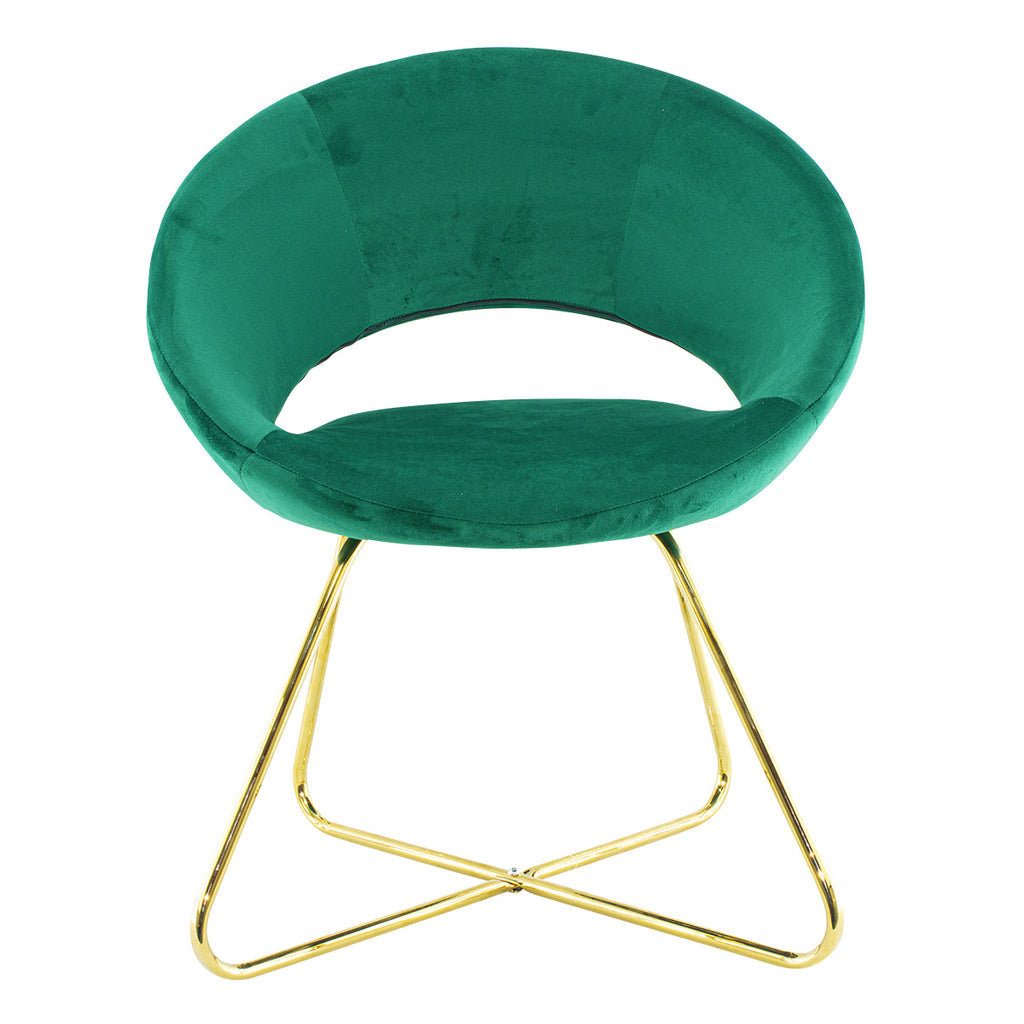 Le siège design en demi-cercle a une structure en fer avec un rembourrage en mousse, la robustesse et le confort sont absolument garantis. Greta est recouverte d'un magnifique tissu effet velours, ce qui la rend très douce au toucher et très chaude. Les pieds en fer lui confèrent une grande stabilité, la laque dorée et le croisement d'étoiles en font un élément rétro supplémentaire qui fait de notre Greta une diva de l'ameublement.