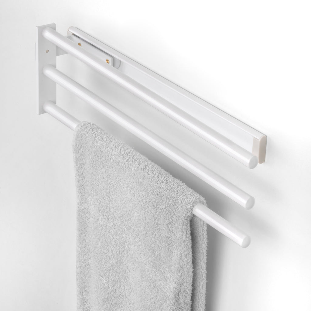 Porte-serviettes coulissant Description 3 bras en aluminium peint en blanc Emuca