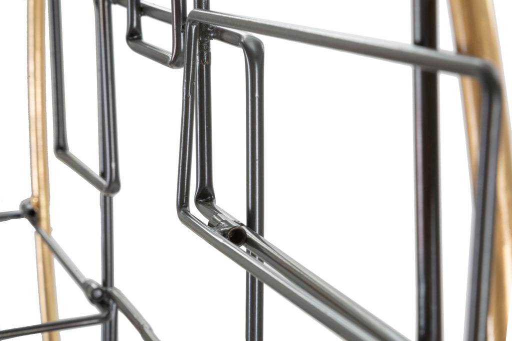 Elégant porte-bouteille mural en métal noir et doré. Les dessins géométriques combinés rappellent le futurisme ou les abstractions cubistes. Il peut contenir 4 bouteilles.