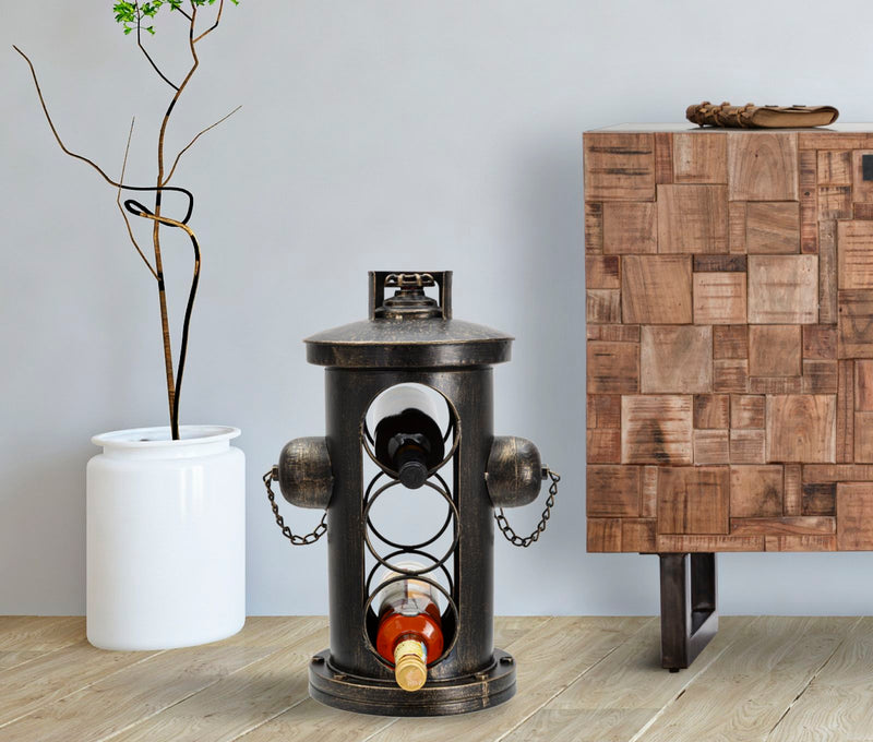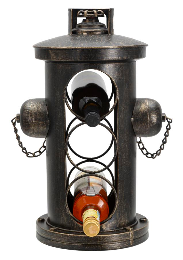 Porte-bouteille de style industriel avec un design qui rappelle les bouches d'incendie américaines. Il peut contenir 3 bouteilles. La conception particulière donne une touche d'unicité à la barre d'angle.