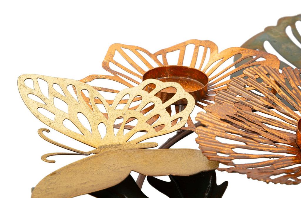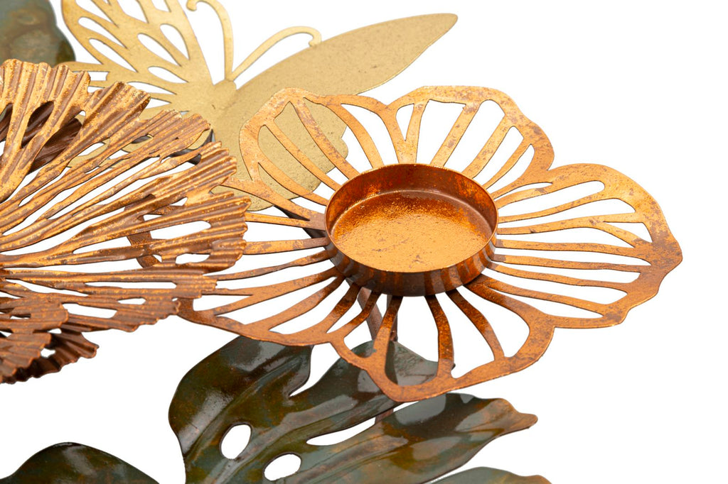 - Porta candela Shine 1 in ferro, con foglie e fiori multicolori