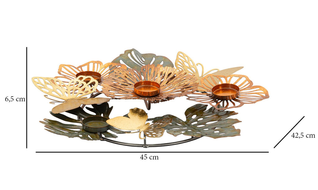 Il portacandele rotondo è un oggetto decorativo caratterizzato dalla sua composizione di foglie e fiori multicolori. Grazie al suo design unico e vivace, aggiunge un tocco di vivacità e allegria all'ambiente circostante. Con la capacità di contenere fino a quattro candele, offre una luce soffusa e romantica per creare l'atmosfera perfetta durante le serate speciali. Ideale per arredare e personalizzare sia gli interni che gli esterni della casa.