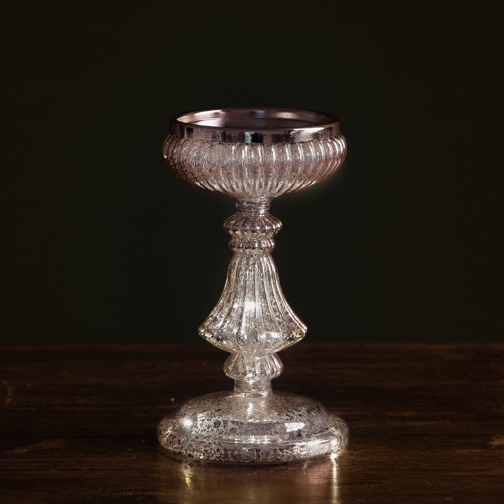 - La candela d'argento ha una base rotonda ed è di alta qualità.