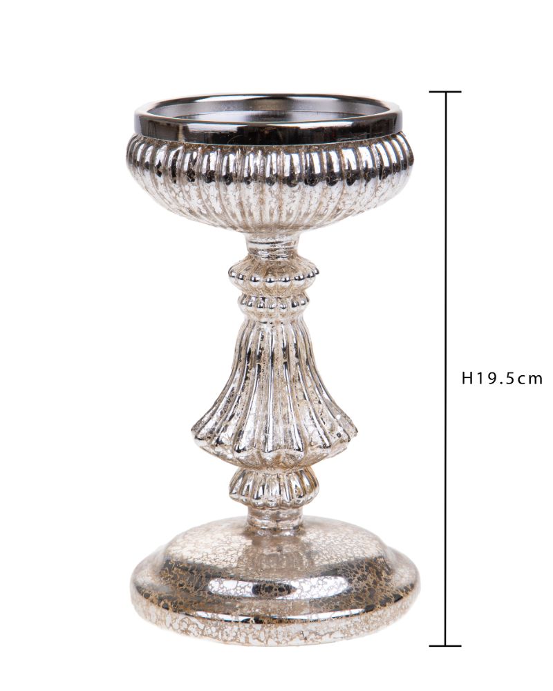 Candela d'argento con una base rotonda: questa candela d'argento con una base rotonda è una deliziosa aggiunta per qualsiasi casa. Realizzata con prodotti di alta qualità, è caratterizzata da un argento lucido con una finitura brillante. Questo portacandela dal design elegante e raffinato sarebbe una splendida aggiunta al tuo arredamento. La base rotonda conferisce un tocco di modernità a questo portacandele, mentre l'argento contribuirà a donare uno splendore distinto alla tua stanza. Il prodotto è facile da pulire: può semplicemente essere spolverato con un piumino e pulito con un panno asciutto. Un regalo perfetto per qualsiasi occasione.