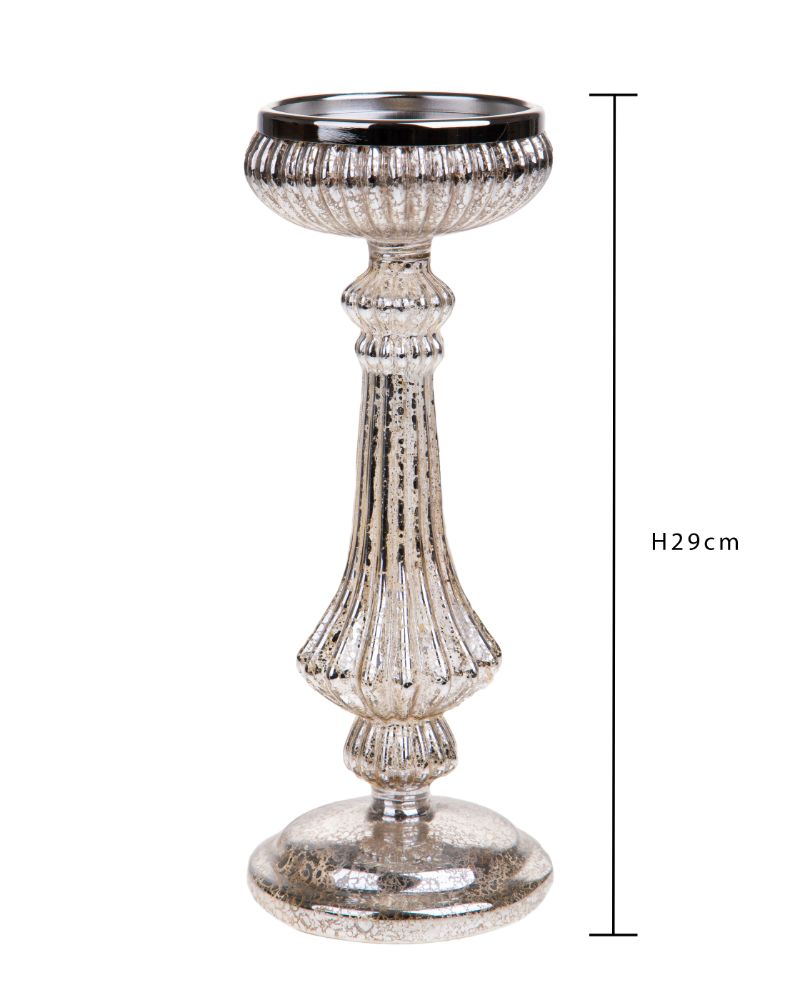 Candela portacandele d'argento con bordo in argento. Questa candela portacandele d'argento, realizzata con prodotti di ottima qualità, è un tocco di lusso per la tua casa. La finitura d'argento conferisce alle tue candele un look elegante e raffinato ed è abbastanza resistente per durare a lungo. Il suo mantenimento è semplicissimo: per la pulizia può essere semplicemente fatta spolverando con un piumino e con un panno asciutto. Questo portacandele argento è il regalo perfetto per qualsiasi occasione.