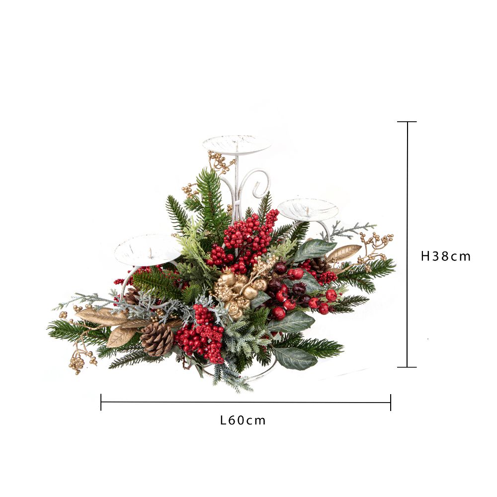 - Enrichi de décorations rouges et dorées pour un look raffiné.