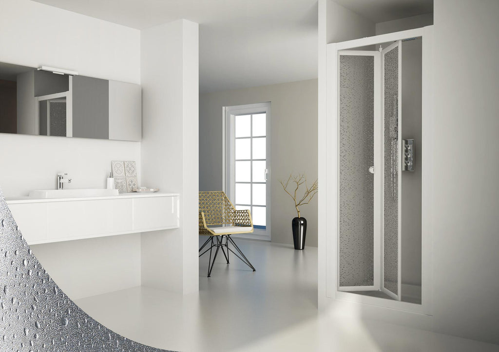 Porte de Douche 1 Porte Pliante Coulissante en Acrylique H185 cm Dorini Blanc Différentes Tailles