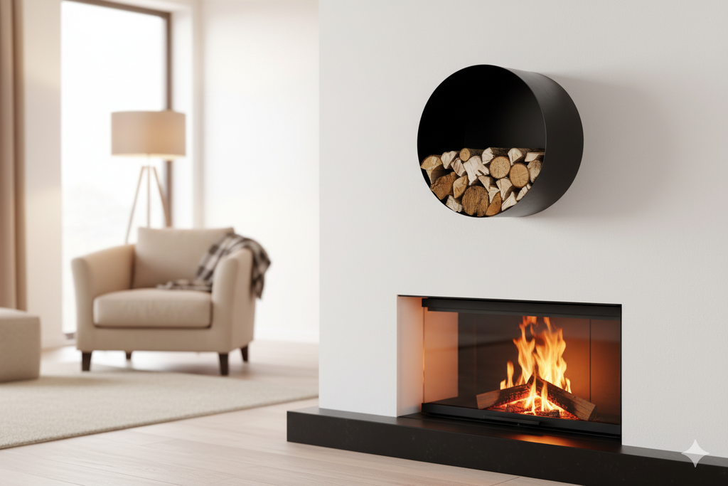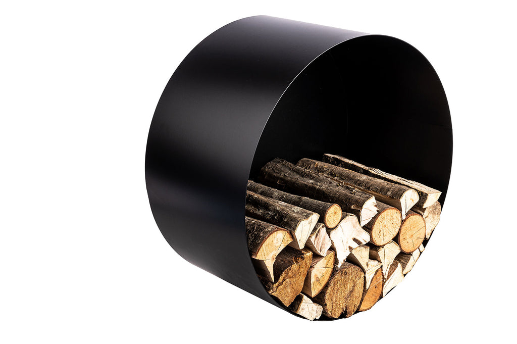Porta Legna a Muro Ø55x30 cm in Ferro Verniciato Grigio Martellato - La Ferrotecnica
