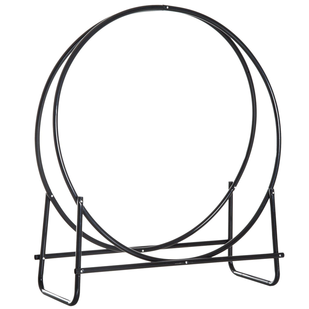 Support à bois design cercle d'intérieur en fer noir 102x40x114 cm
