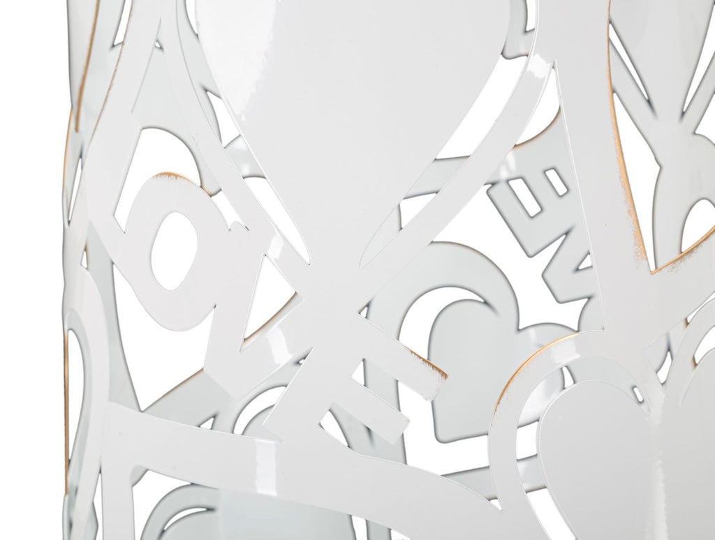 Porte-parapluie Coeur Blanc Ø21x55 cm en Fer Blanc et Doré