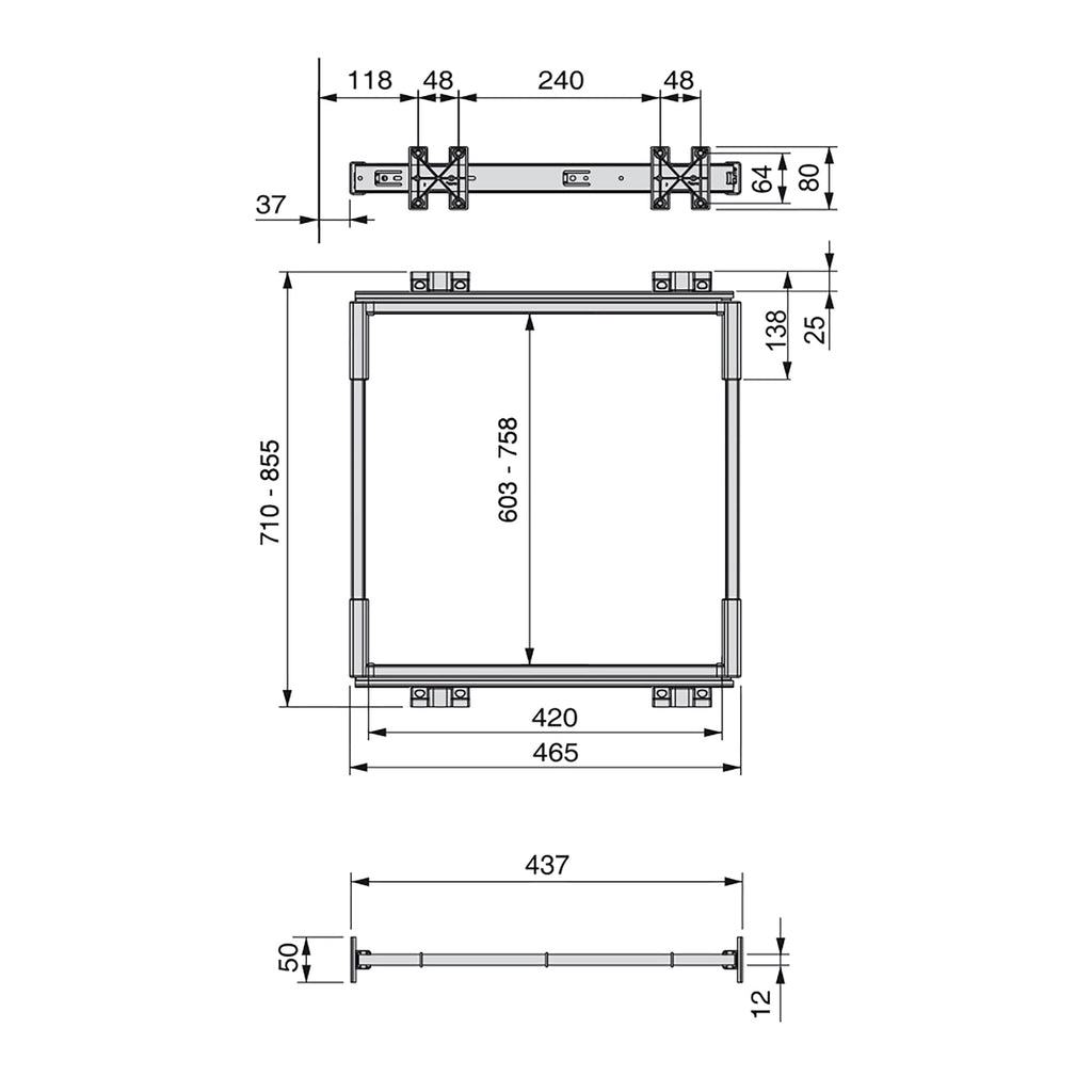 - Idéal pour un compartiment de garde-robe interne de 710-855 mm.