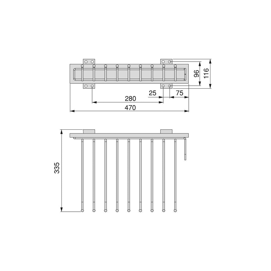. Montage simple sur le côté, dont l'extraction s'effectue via des guides à rouleaux pour le coulissement. Il dispose de 9 tiges qui incluent des joints antidérapants pour s'assurer que les vêtements ne tombent pas. Il dispose également d'un bouton avant pour faciliter son extraction.Il est en aluminium avec une tige en acier chromé et des supports en plastique noir .