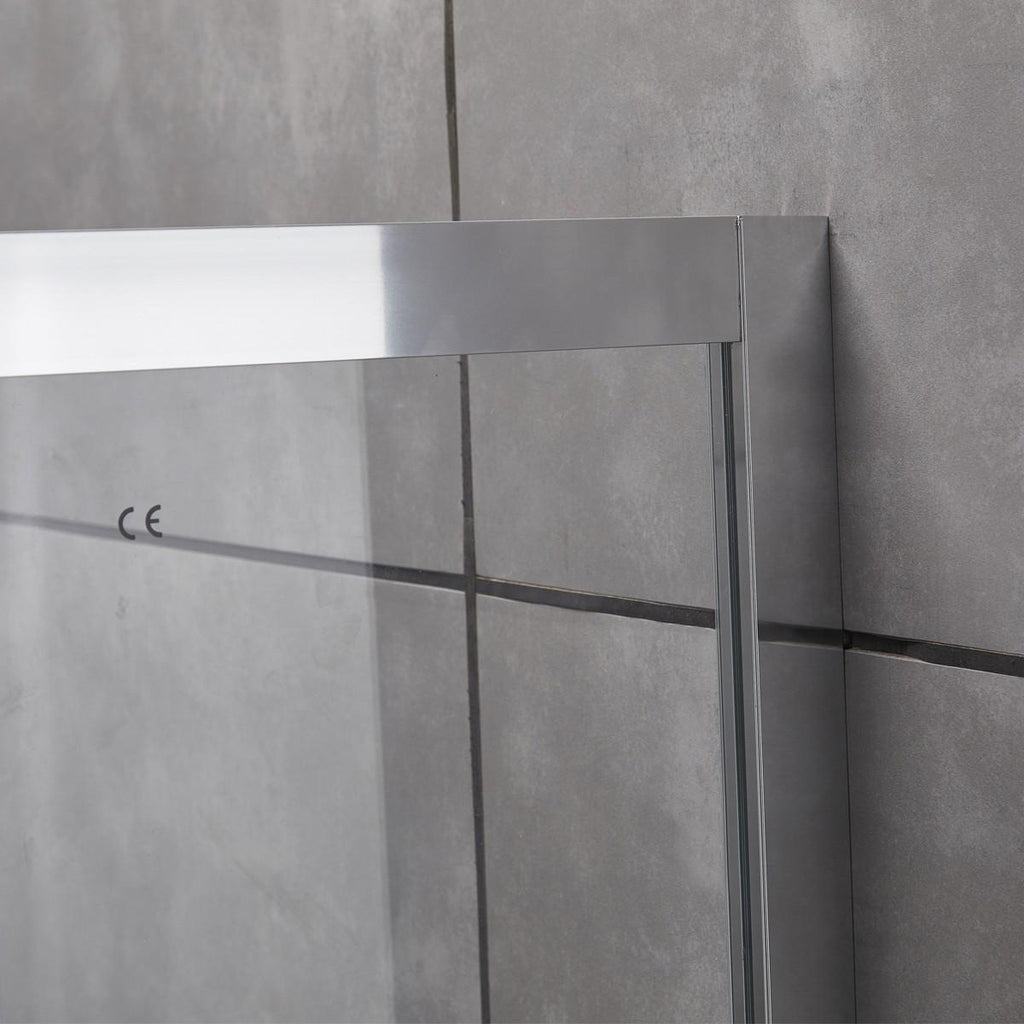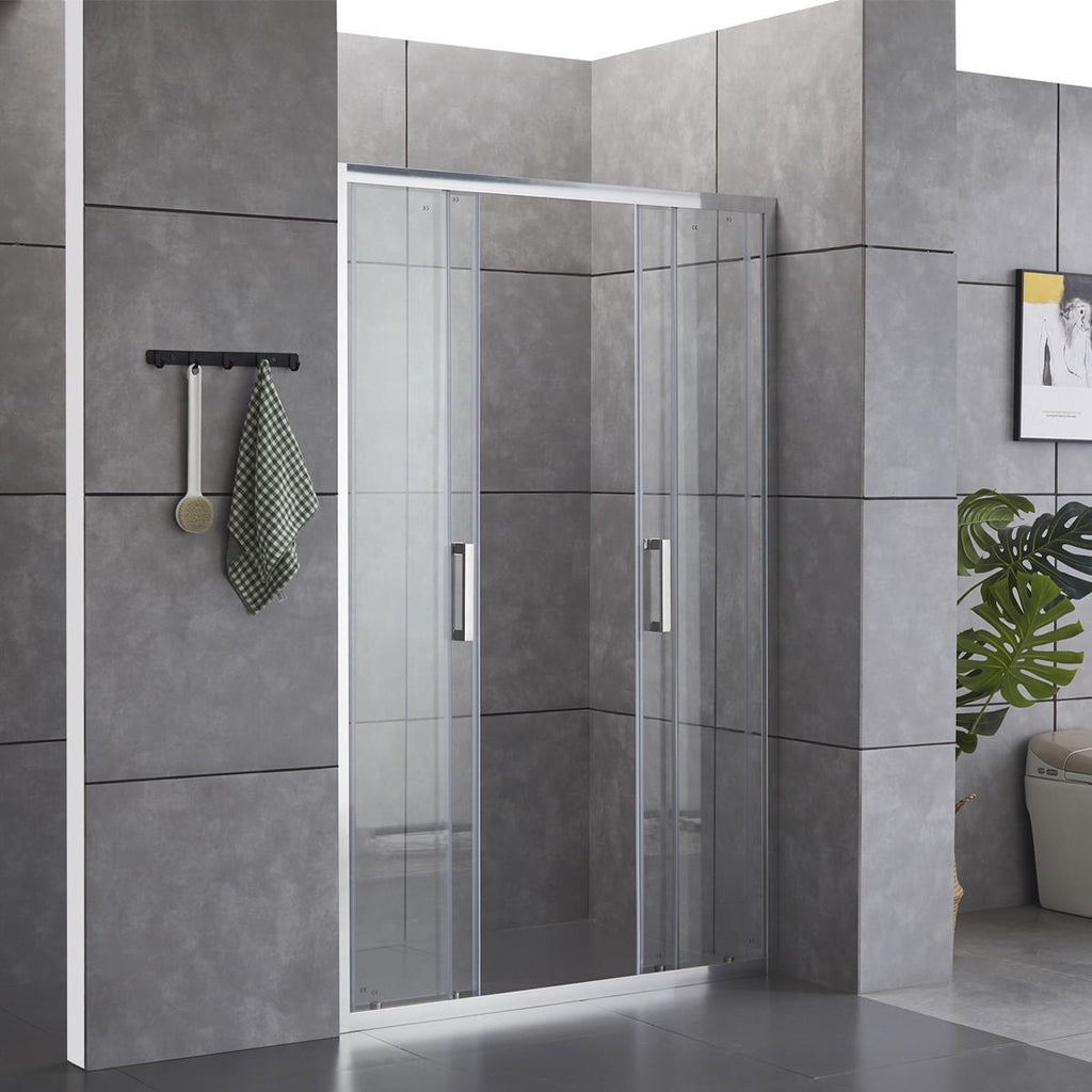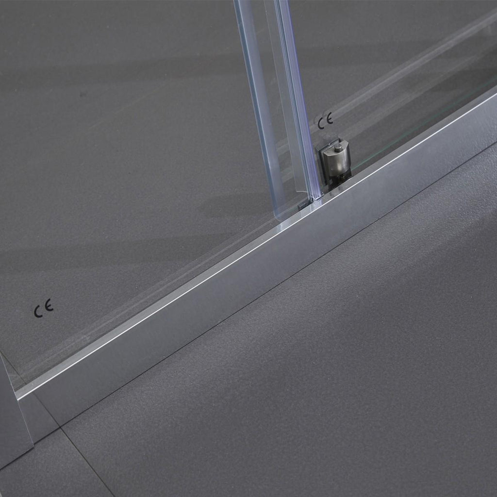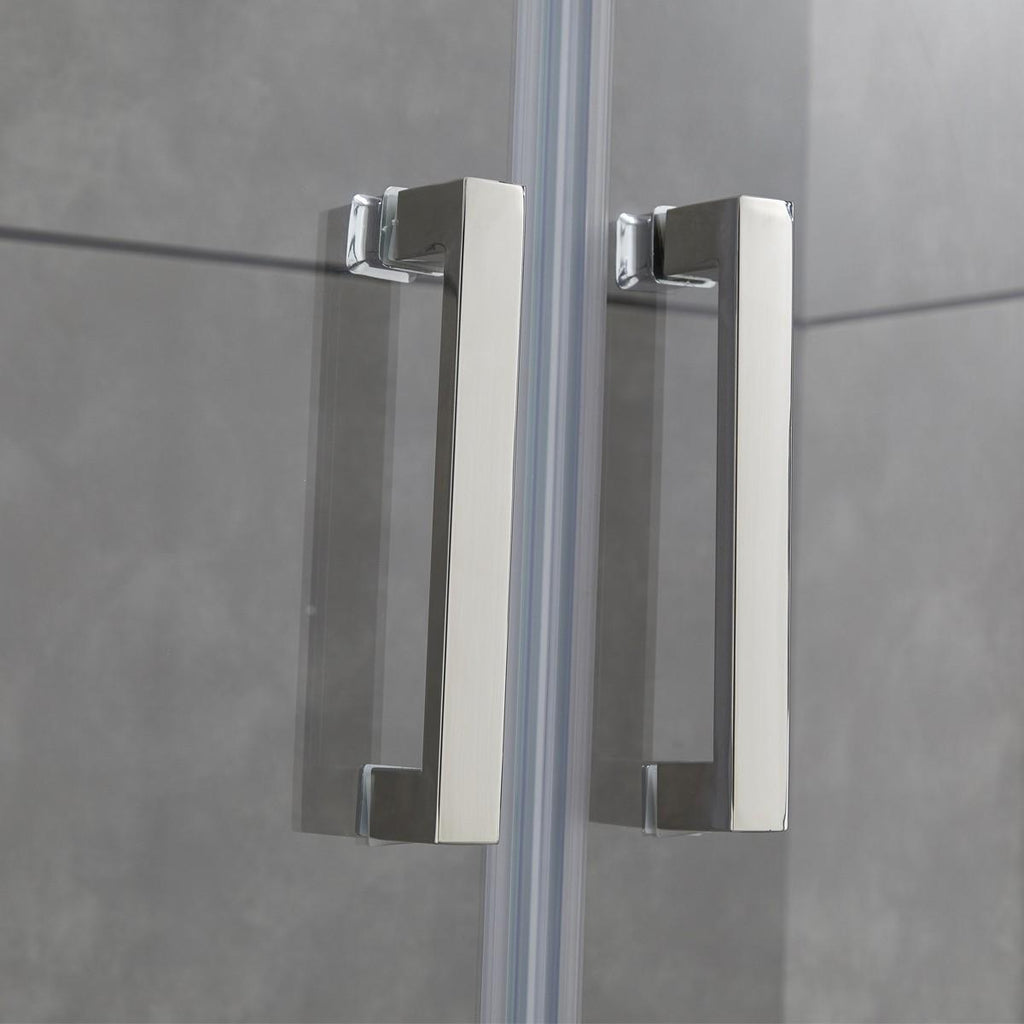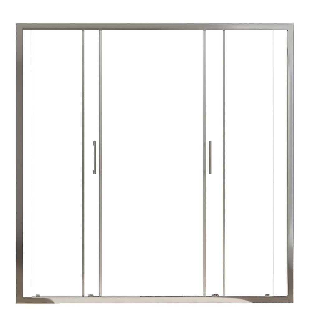 Porte de douche entrée centrale h190 avec verre transparent 6mm avec traitement anticalcaire. Équipé d'une poignée avec bouton interne en acier inoxydable Aisi 304 et d'un déverrouillage rapide pour un nettoyage facile.
