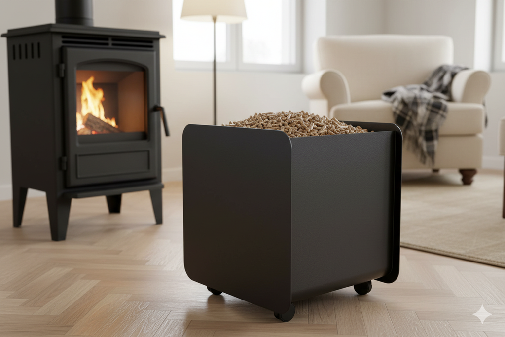 Porta Pellet Senza Coperchio 40x49x50 cm in Ferro Verniciato Grigio Martellato - La Ferrotecnica
