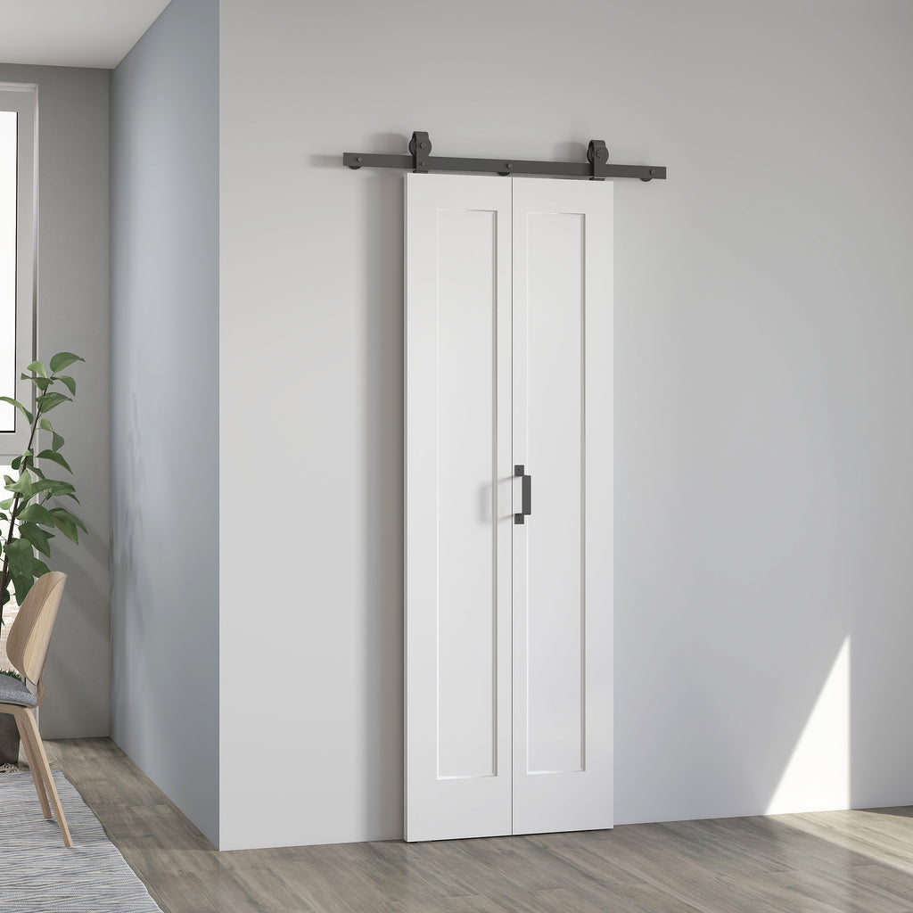 Porta Scorrevole a Libro Pieghevole a Portafoglio 70x210 cm con Superficie Verniciabile in MDF e Acciaio Bianco