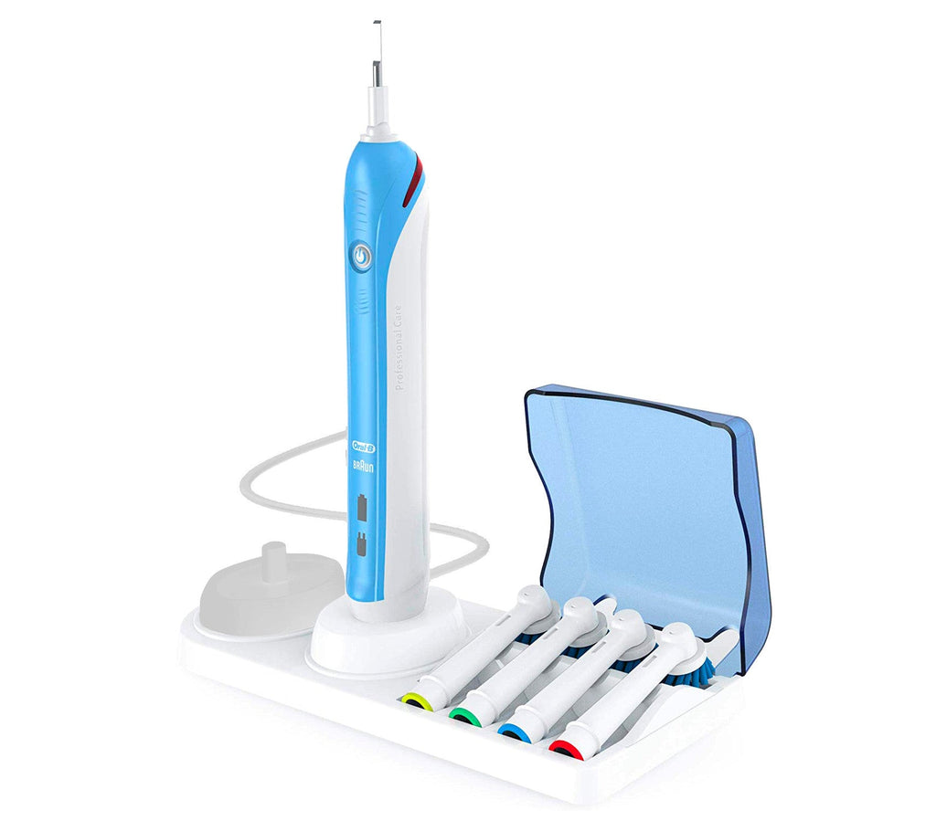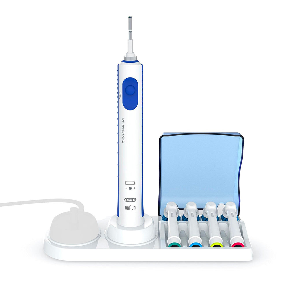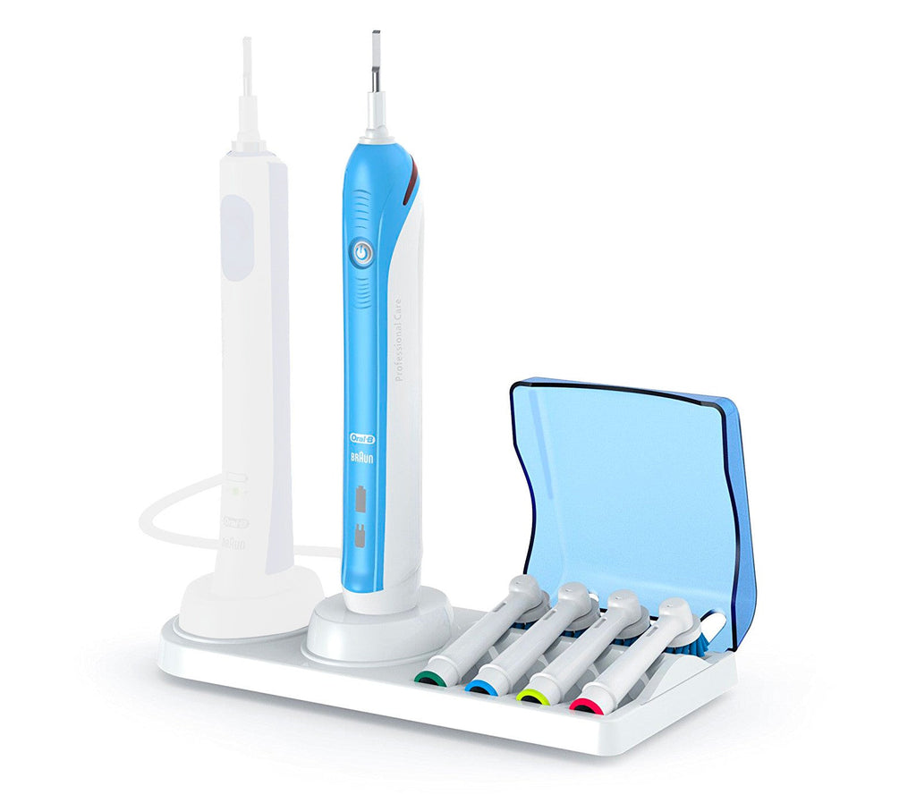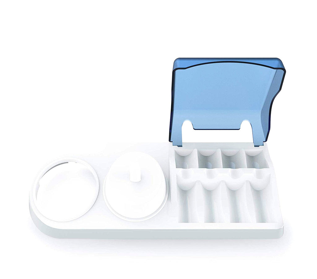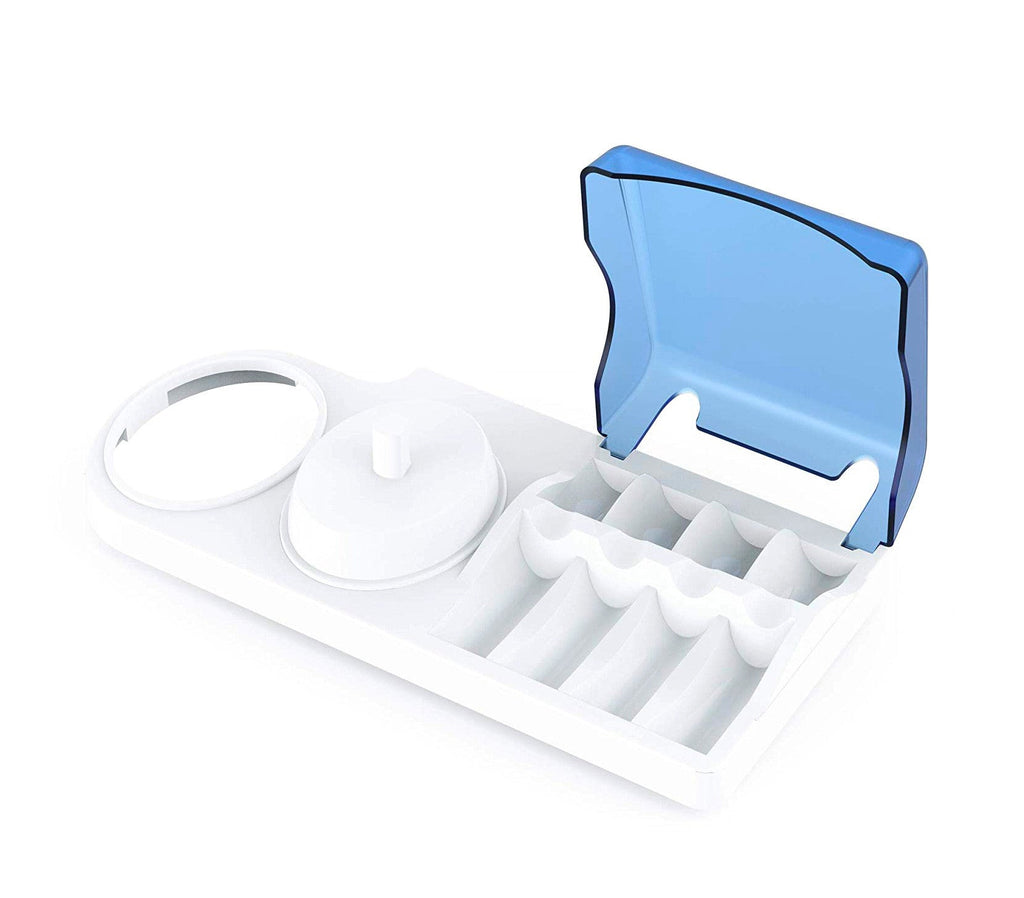 Il est facile à utiliser et à placer n'importe où dans votre salle de bain, il est compatible avec la plupart des brosses à dents électriques et têtes de brosse. Il a un compartiment avec un rabat pour 4 têtes, avec une prise supplémentaire pour pouvoir insérer une base avec recharge (non incluse).