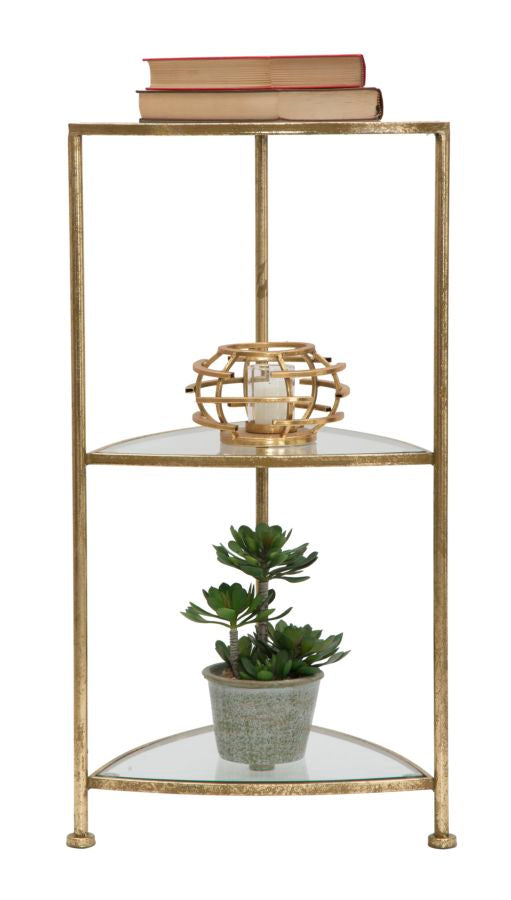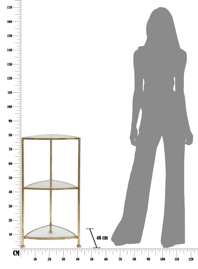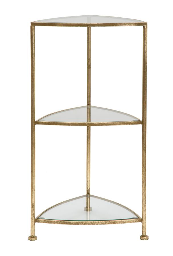 Support de téléphone Triangle 3 étagères 41,5x40x80,5 cm en fer et verre doré