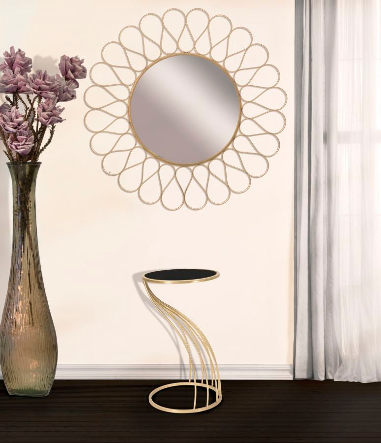 Porte-téléphone Flush Ø35x60 cm en MDF Fer et Miroir Noir et Or