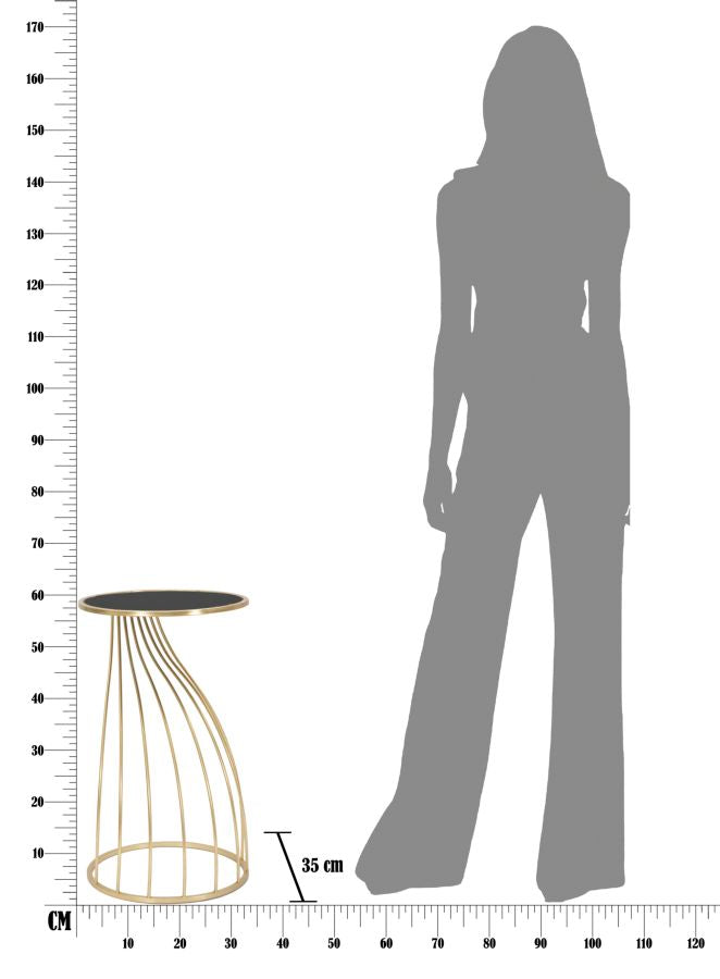 Table téléphonique en métal et verre aux lignes sinueuses et captivantes. L'or combiné au noir crée un fort impact. Un élément luxueux et glamour pour votre maison