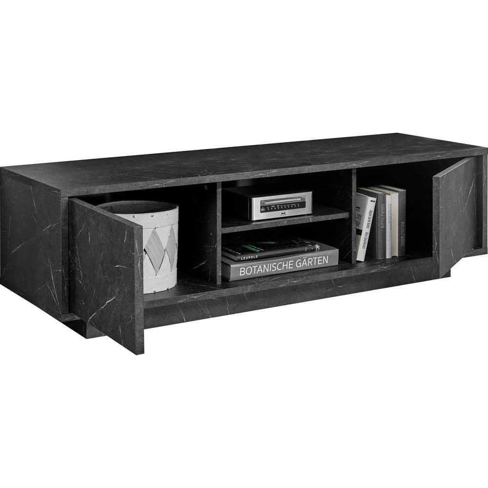 Meuble TV Rock 2 portes effet marbre noir 139x43x44h