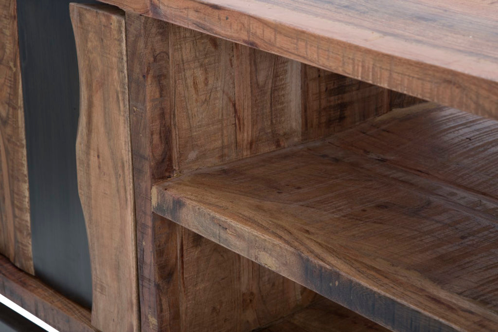 Meuble TV Yellowstone 145x40x60 cm en bois d'acacia et fer marron et noir
