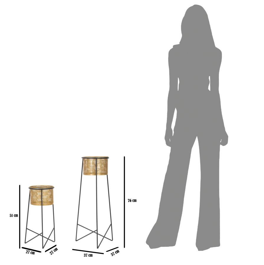 Porte Vase Exy Ø37x76-27x51 cm en Fer Doré et Noir