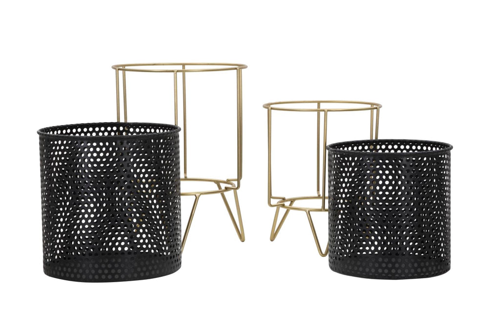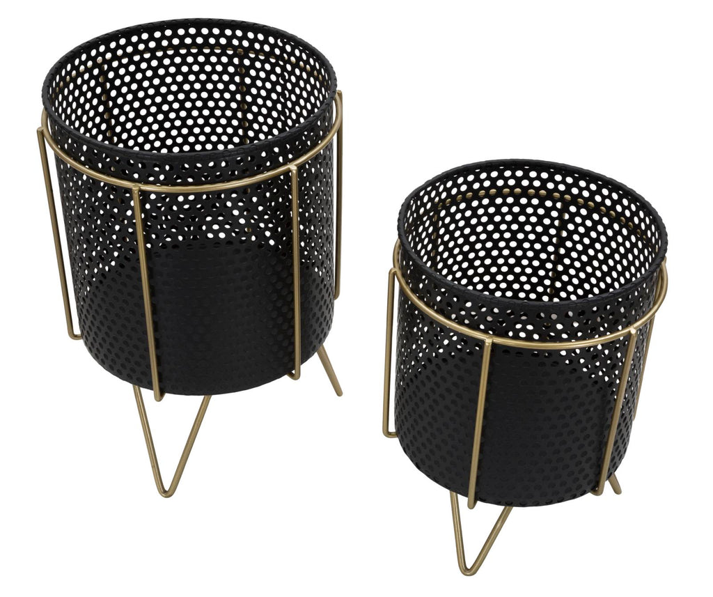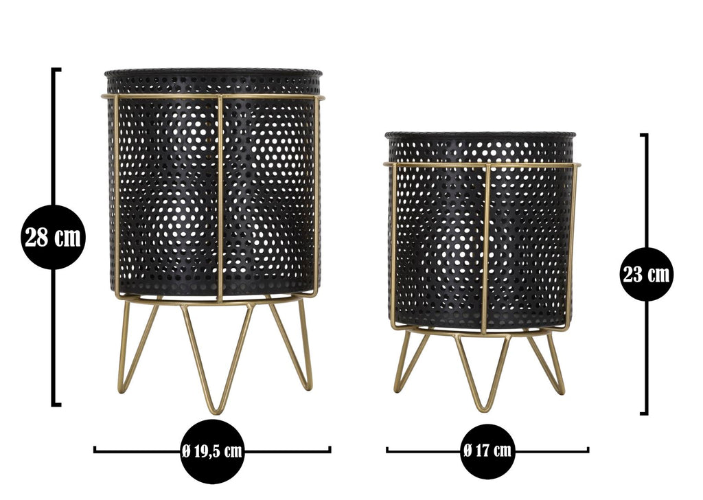 Fashion Pair Cache Pot Ø19,5x28-17x23 cm en Fer Noir et Doré