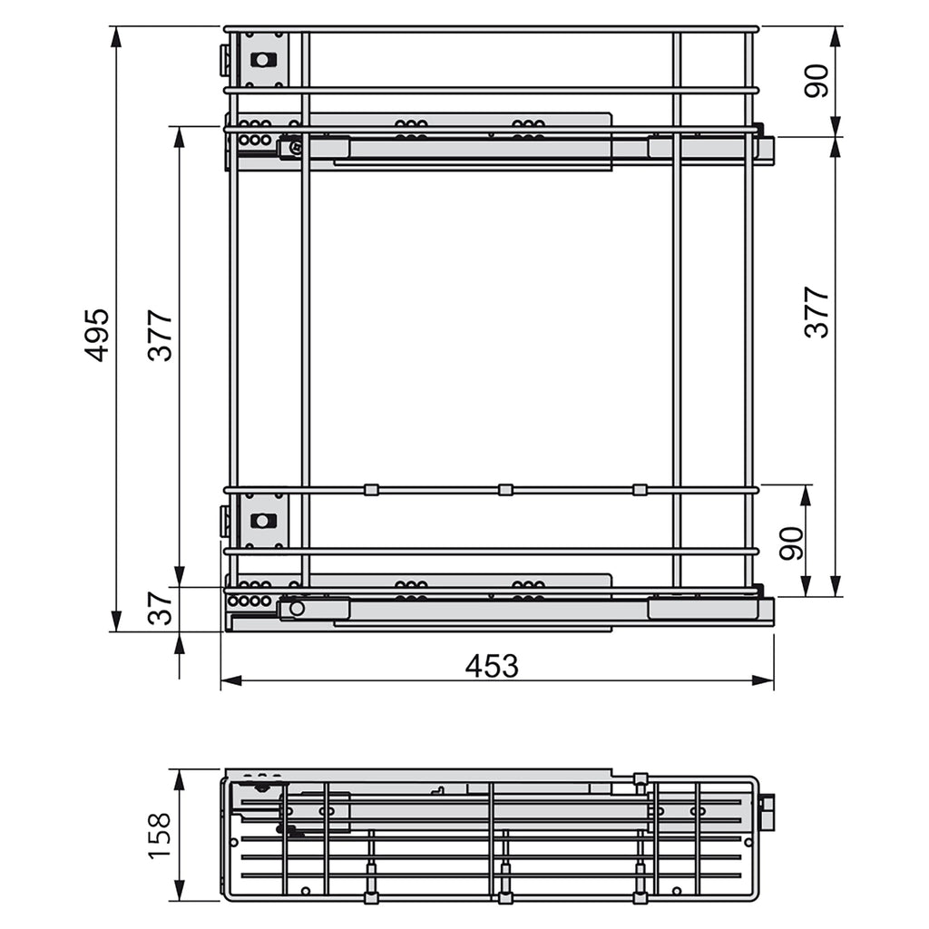 - Fixation latérale sur le côté gauche par 2 guides à roulettes, avec extraction totale et fermeture amortie.