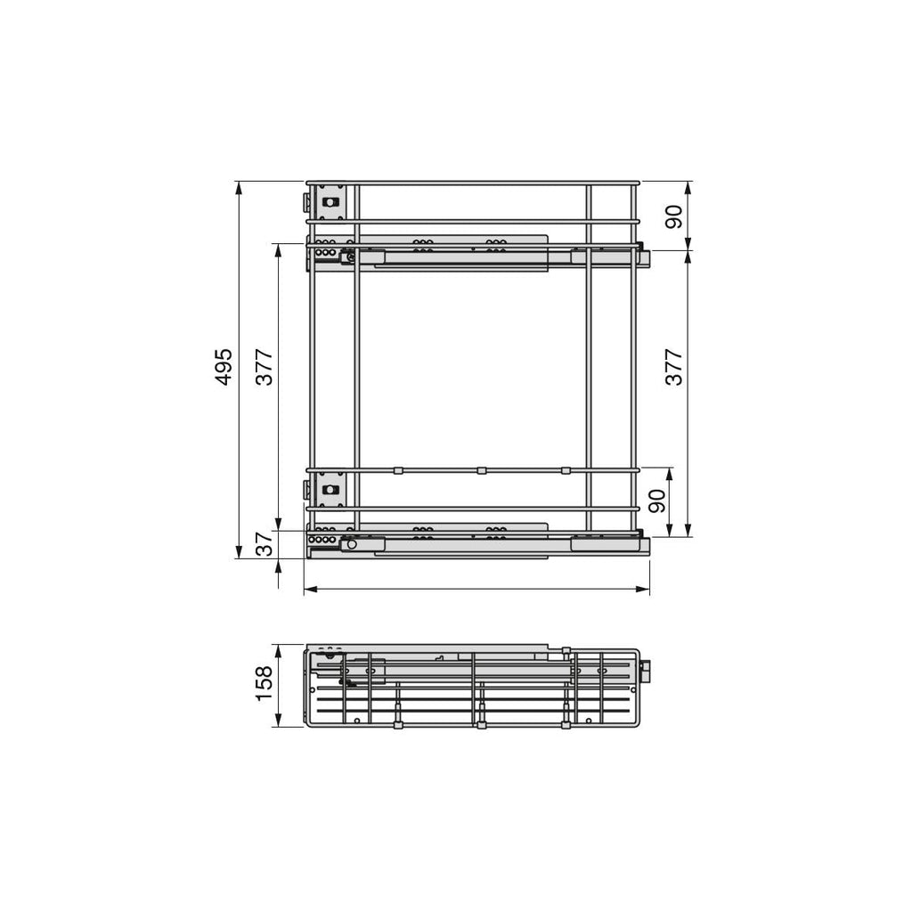 Facile istallazione: fissaggio nel lato sinistro del mobile e regolazione totale della porta (5D). La struttura è prodotta in acciaio cromato con 2 livelli ed include guide con rotelle ad estrazione totale e chiusura soft che permettono un dolce scivolamento del sistema evitando rumori. Il cesto inferiore dispone di 4 spazi per l'oganizzazione delle bottiglie. Capacità di carica fino a 25 kg.