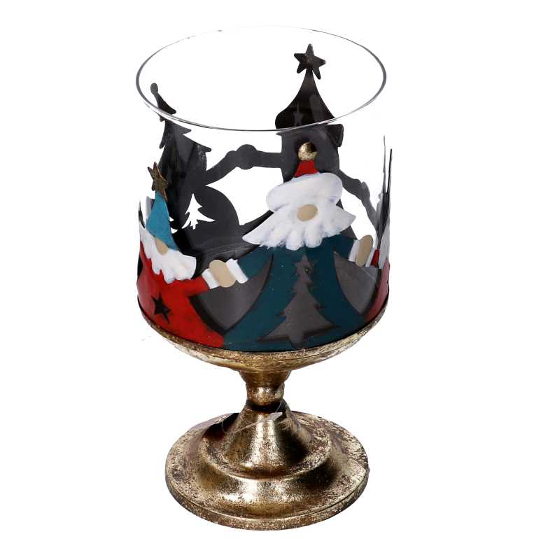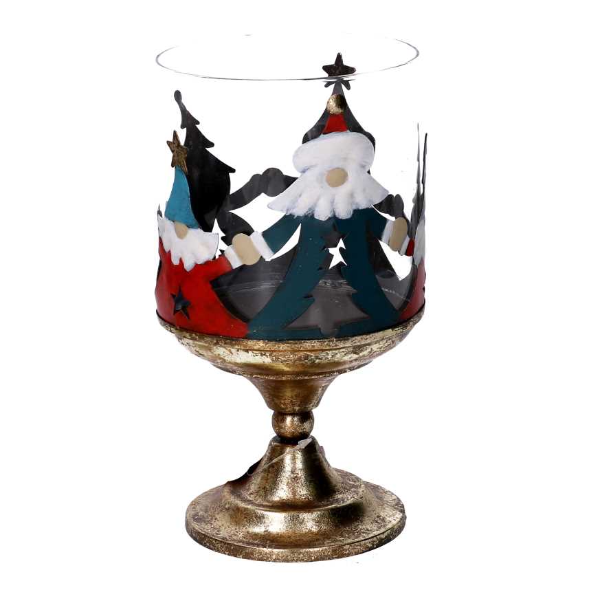 Portacandele metallo con babbo natale oro tondo cm Ø12xh23