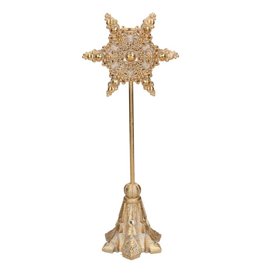 Portacandele metallo oro fiocco di neve1p cm 15x12xh39