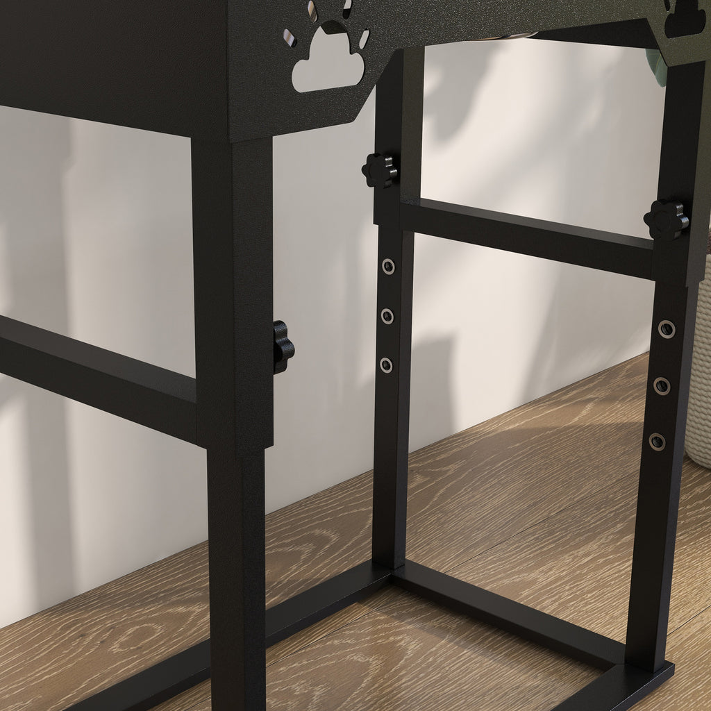 Portaciotole per Cani a 7 Altezze Regolabili 44x27x51 cm con 2 Ciotole Rialzate Ø19x6 cm in Acciaio Nero