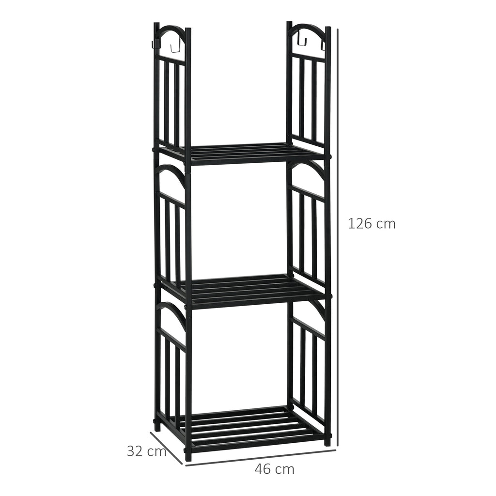 Portalegna 3 Livelli 46x32x126 cm in Metallo con Ganci per Attrezzi Nero
