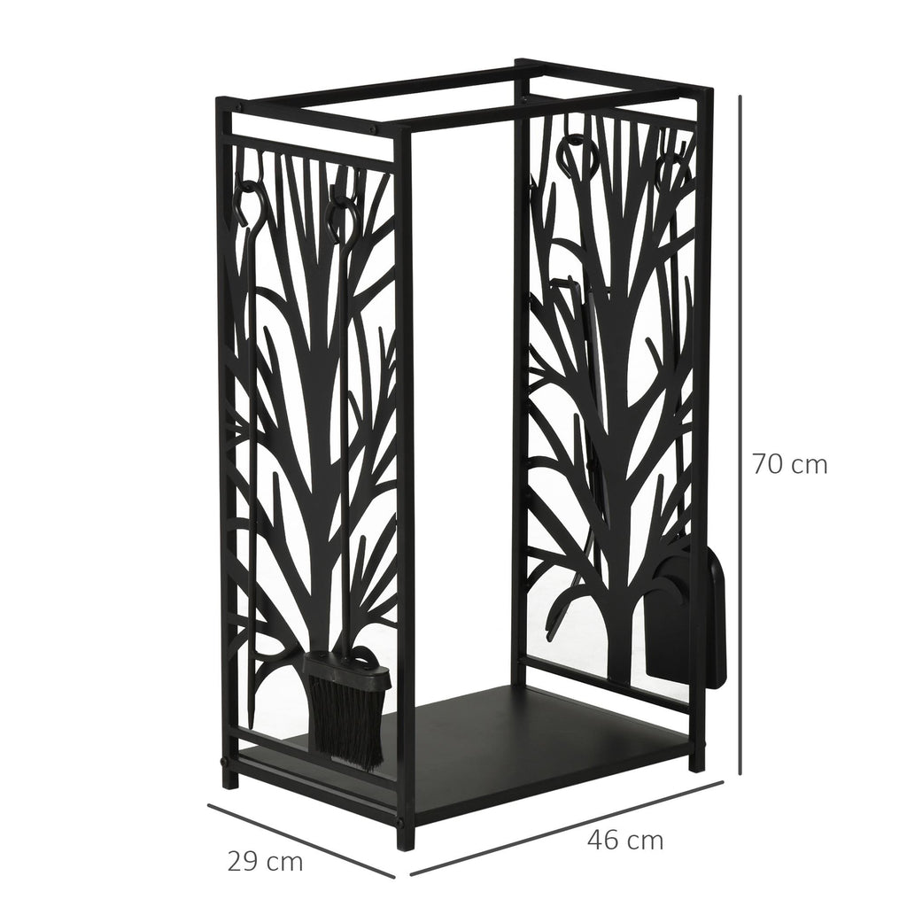 Porte-bûches Woodshed 46x29x70 cm en Acier avec Outils Noirs