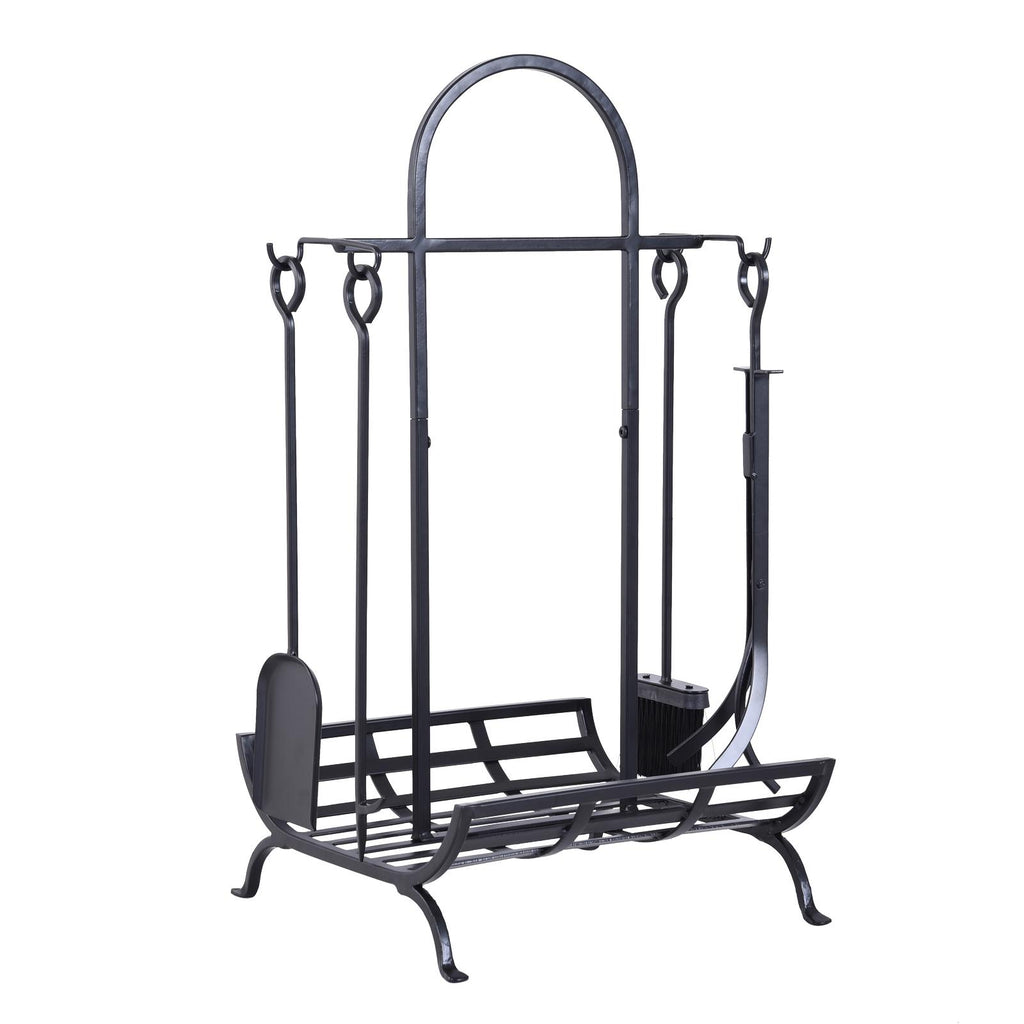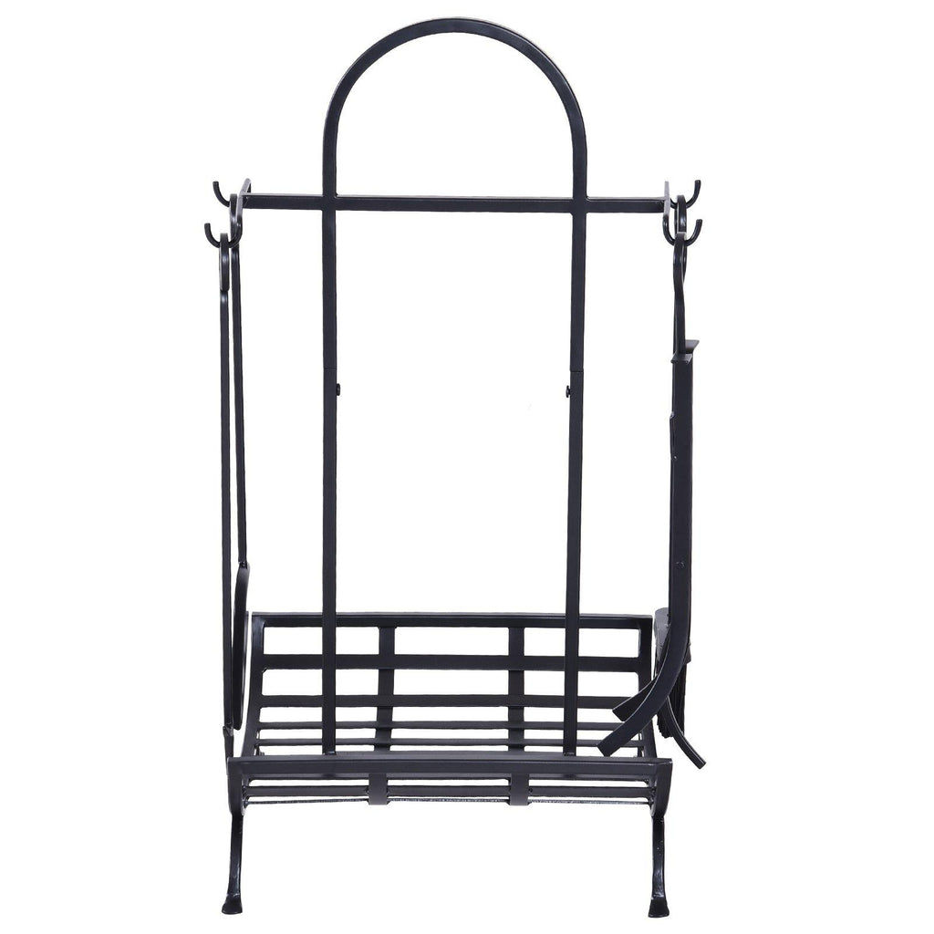 Support bûcher en fer 45x40x78 cm Max 100Kg avec accessoires Noir
