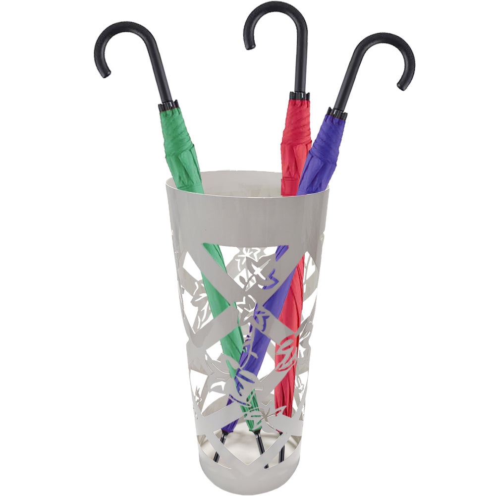Portaombrelli da Ingresso Design Floreale 19,5x19,5x49 cm in Ferro Bianco