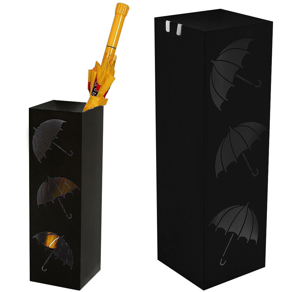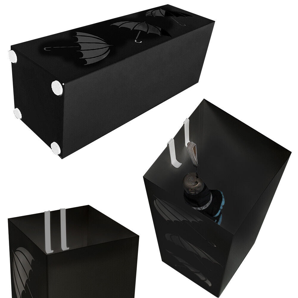 Portaombrelli in Metallo Design Quadrato Stand Nero Vaschetta Salvagoccia