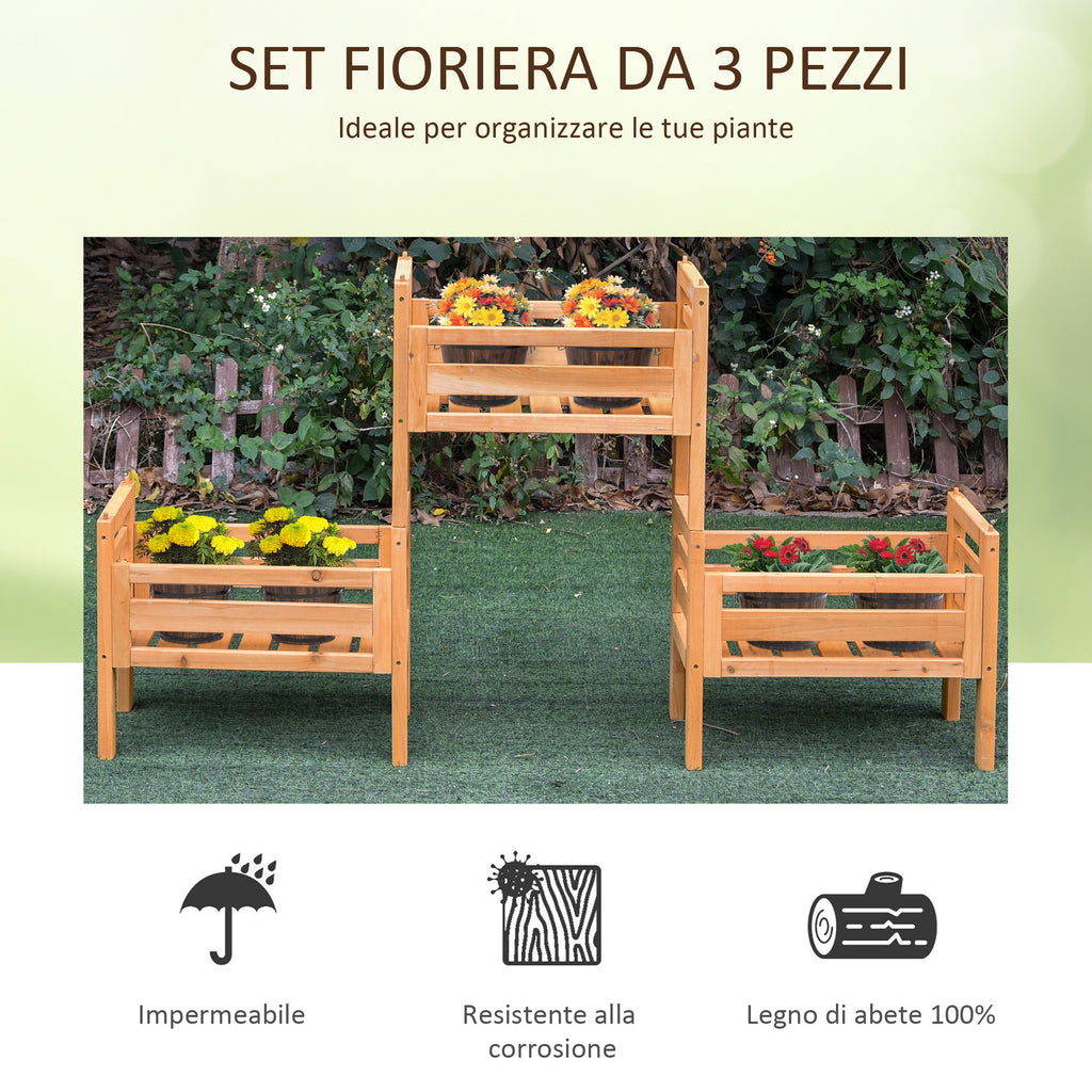 Jardinière Modulable 3 Niveaux 50,8x22,8x40,6 cm en Bois de Sapin Jaune