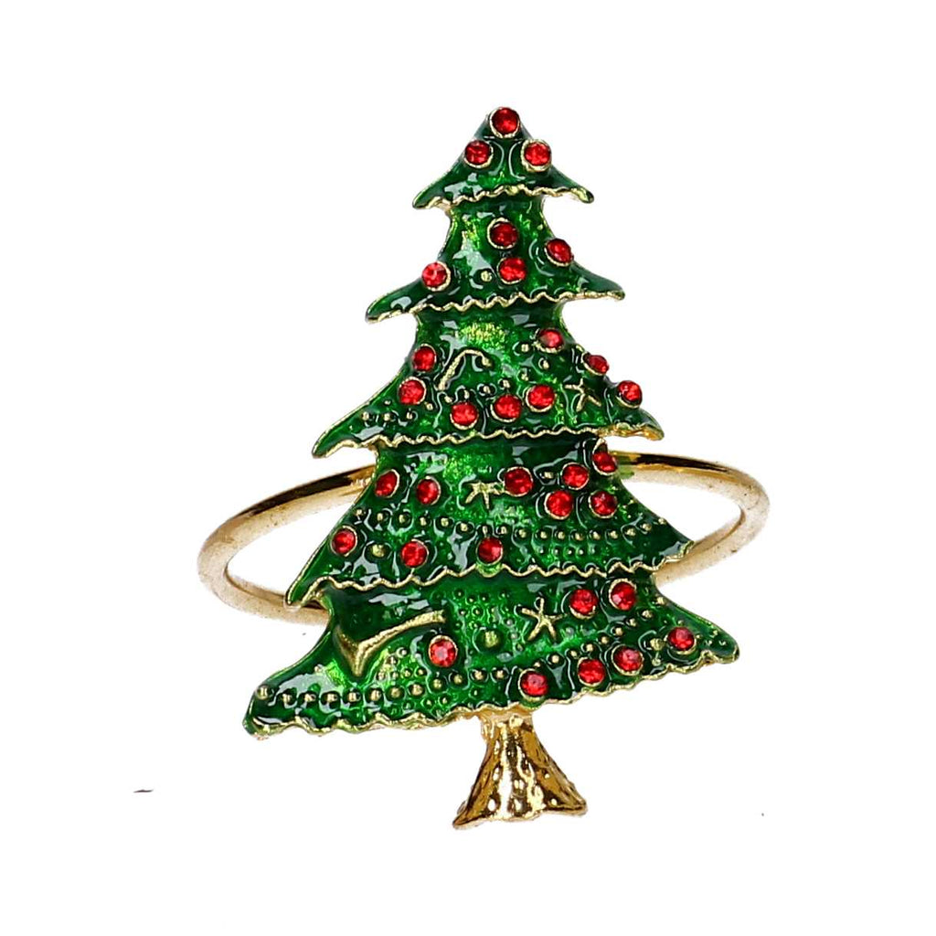 Portatovaglioli metallo confezione 6pz pini verde oro cm 16x11,5xh4,5