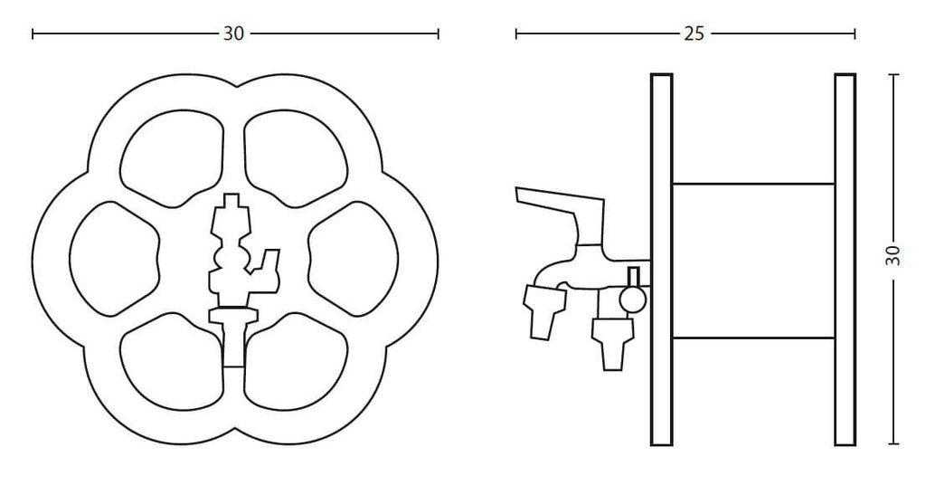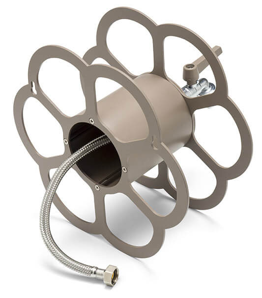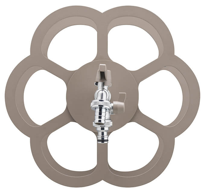 Support de tuyau mural pratique qui vous permet de transformer un simple robinet en un élément fonctionnel et décoratif où vous pouvez ranger votre tuyau d'arrosage de manière ordonnée, en le gardant toujours connecté au robinet secondaire.
