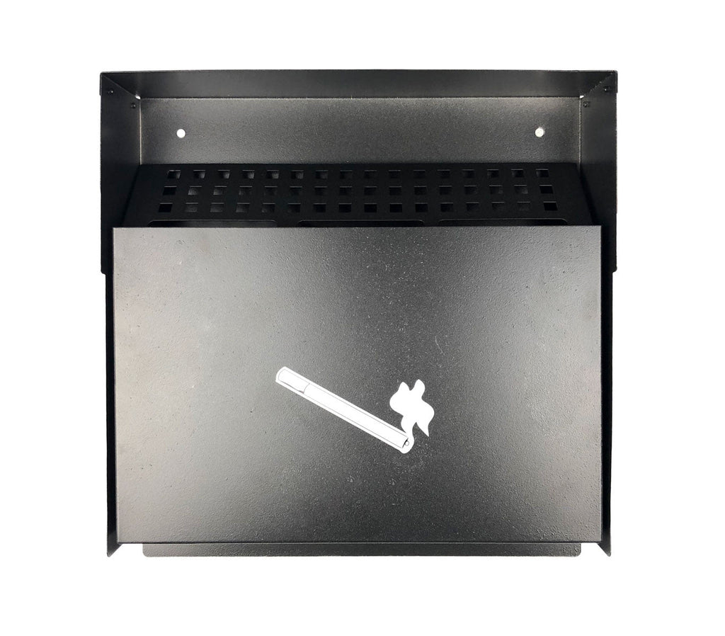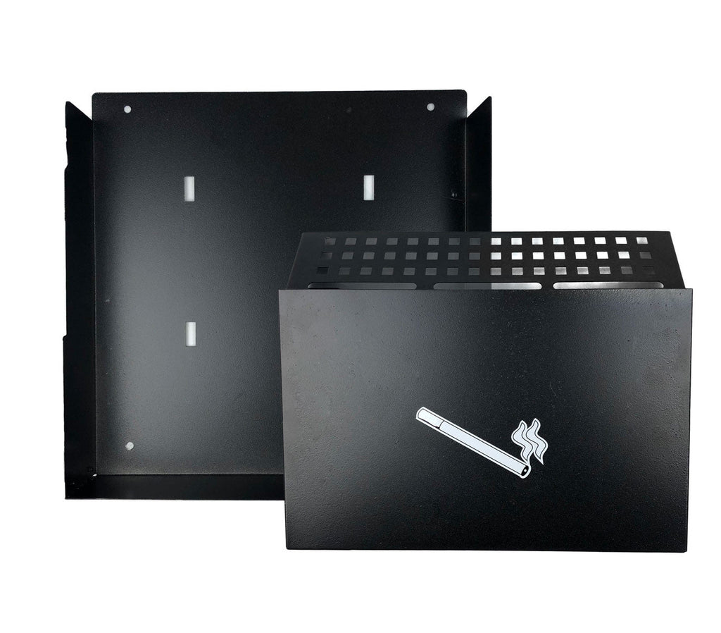 Structure équipée d'un bac à mégots pour faciliter les opérations de vidage des conteneurs. En fer forgé, résistant aux intempéries et avec la prédisposition pour le montage mural.