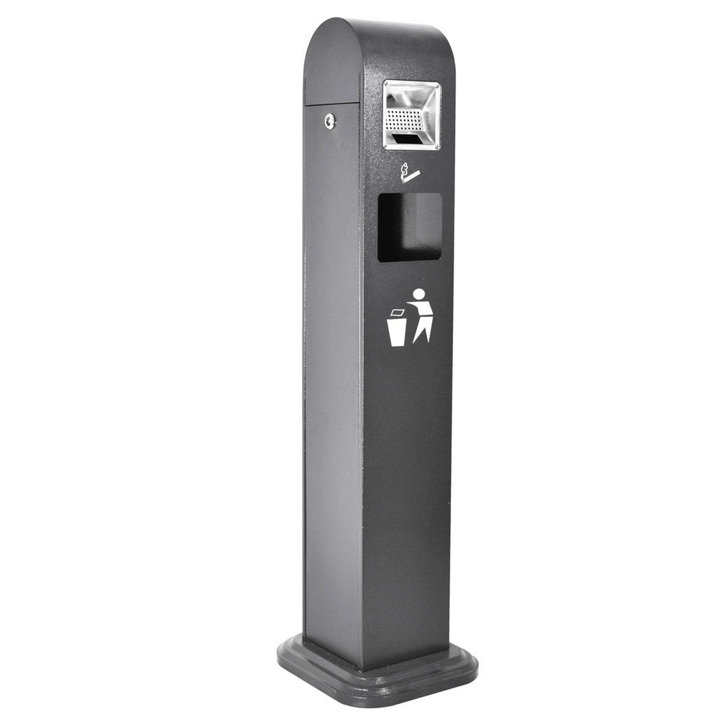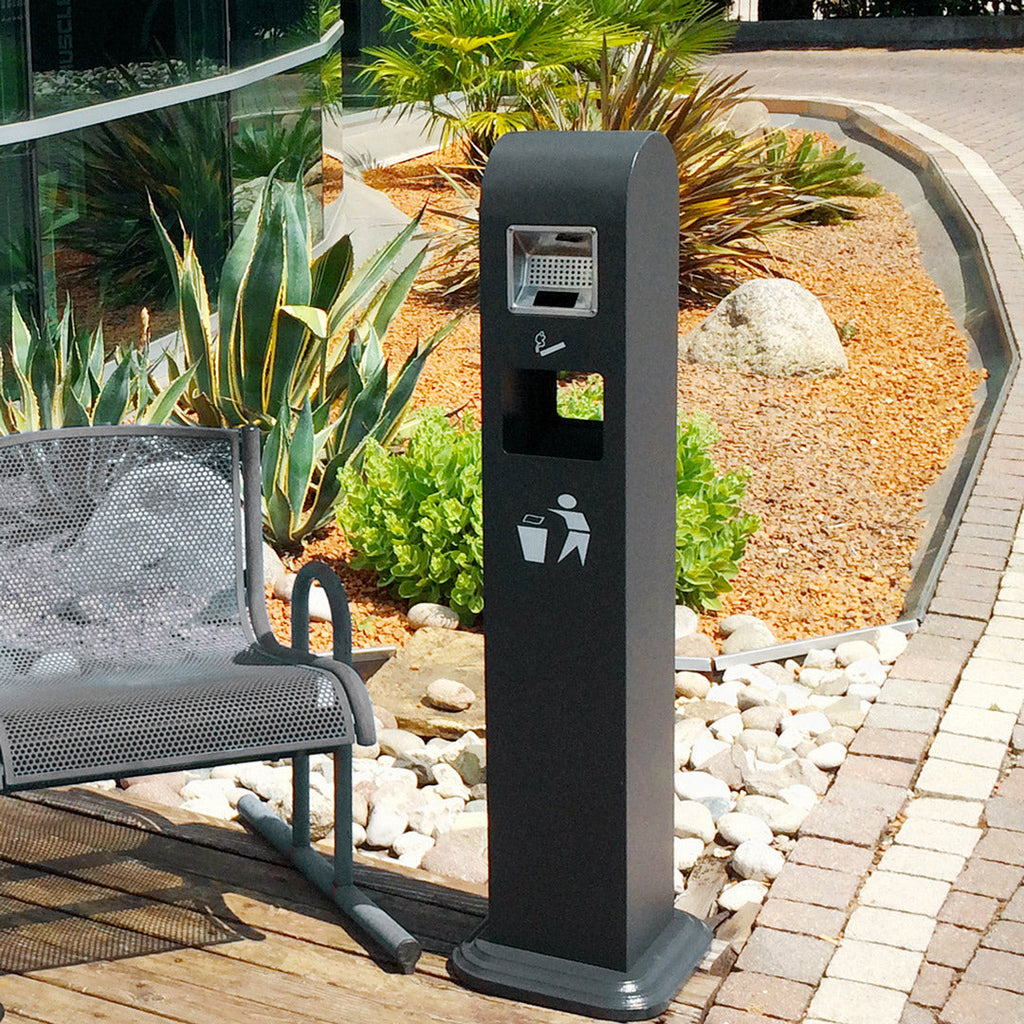 - Cendrier colonne double face avec corbeille en métal thermolaqué gris gothique