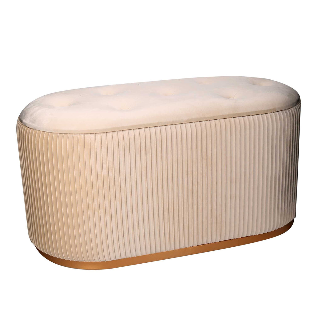 Pouf de rangement 82x42xh41 cm en tissu velours crème
