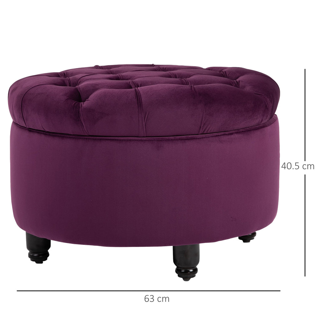Pouf de rangement avec couvercle en velours et boutons matelassés violets