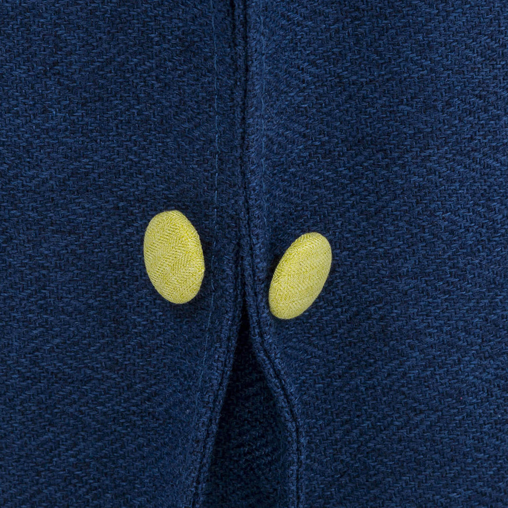 - housse amovible en polyester bleu à chevrons avec cordon et boutons jaunes contrastés