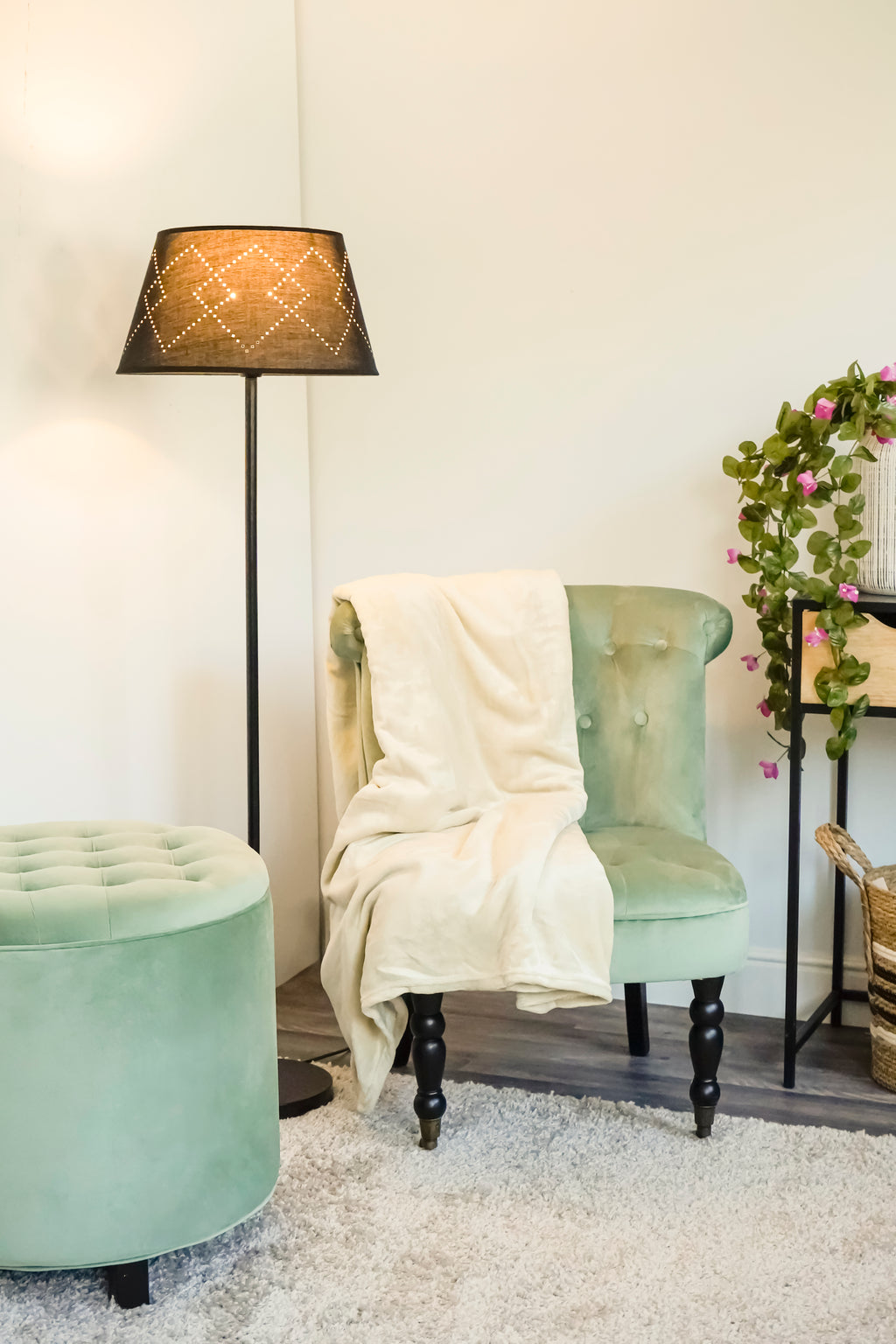 Caractéristiques Techniques Pouf Repose-pieds Container Ø55x55 cm en Velours Soriani Vert Tiffany